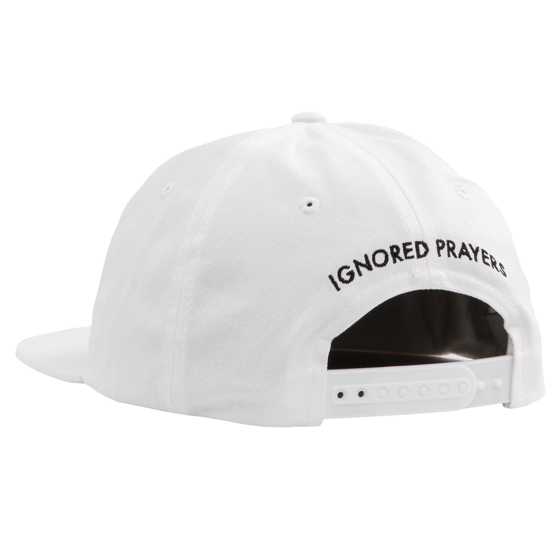 The "Masks" art goes back to the "Melt Away" tee where it is the left chest hit. This art will be directly embroidered on front panel with "Ignored Prayers" branding embroidered on the center back.